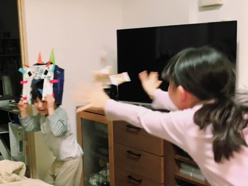 「えいやーっ!!」と家に入ってくる鬼や、心の中にひっそりいる鬼を追い払うべく、みんなで豆まき!!